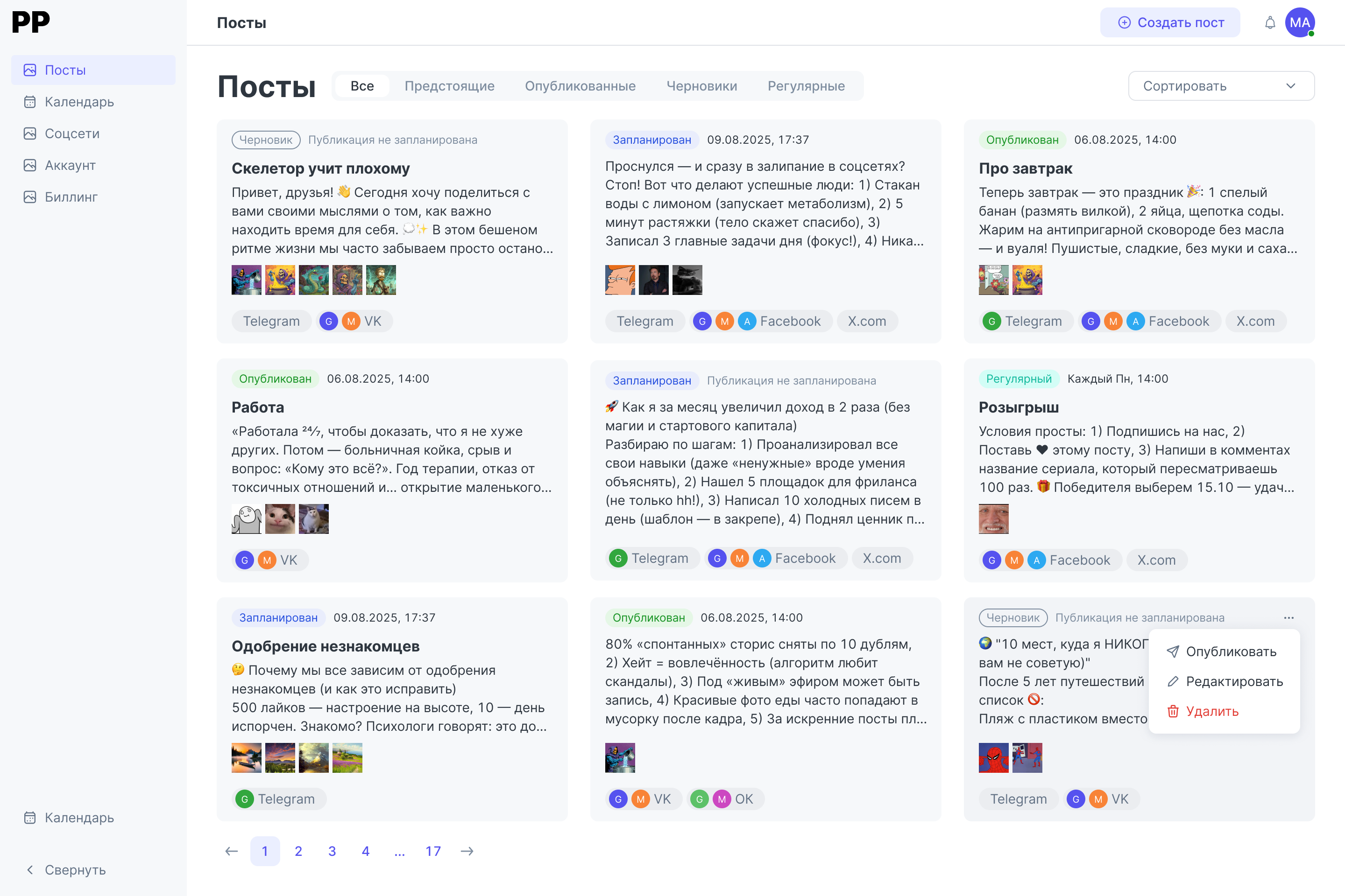 В дальнейшем, мы планируем добавить возможности взаимодействовать с постами через этот интерфейс - исполнить публикацию прямо сейчас, отредактировать или удалить пост.