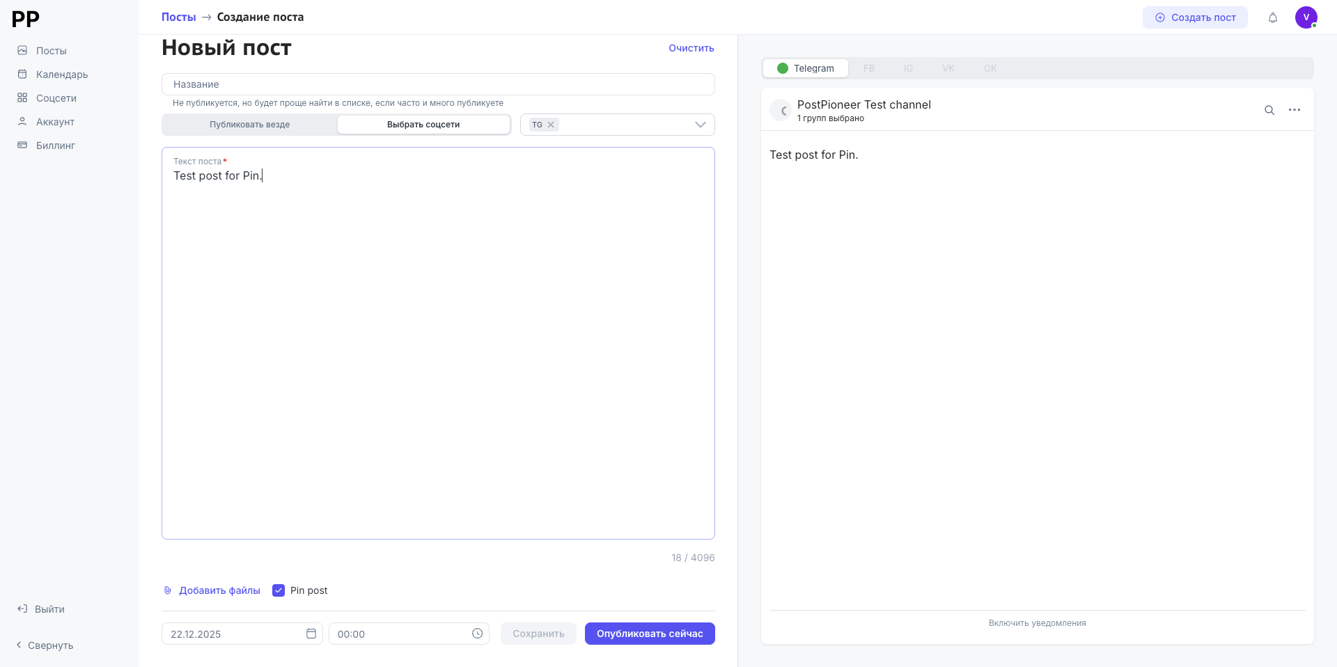 Работа над продуктом Post Pioneer продолжается и была выпущена новая версия. Была добавлена возможность публиковать посты в Телеграм сразу со с Pin поста. А так же, теперь можно публиковать в Facebook и Instagram в виде карусели (видео и фото одновременно). А вот Календарь пока не готов, но будет закончен в ближайшее время.